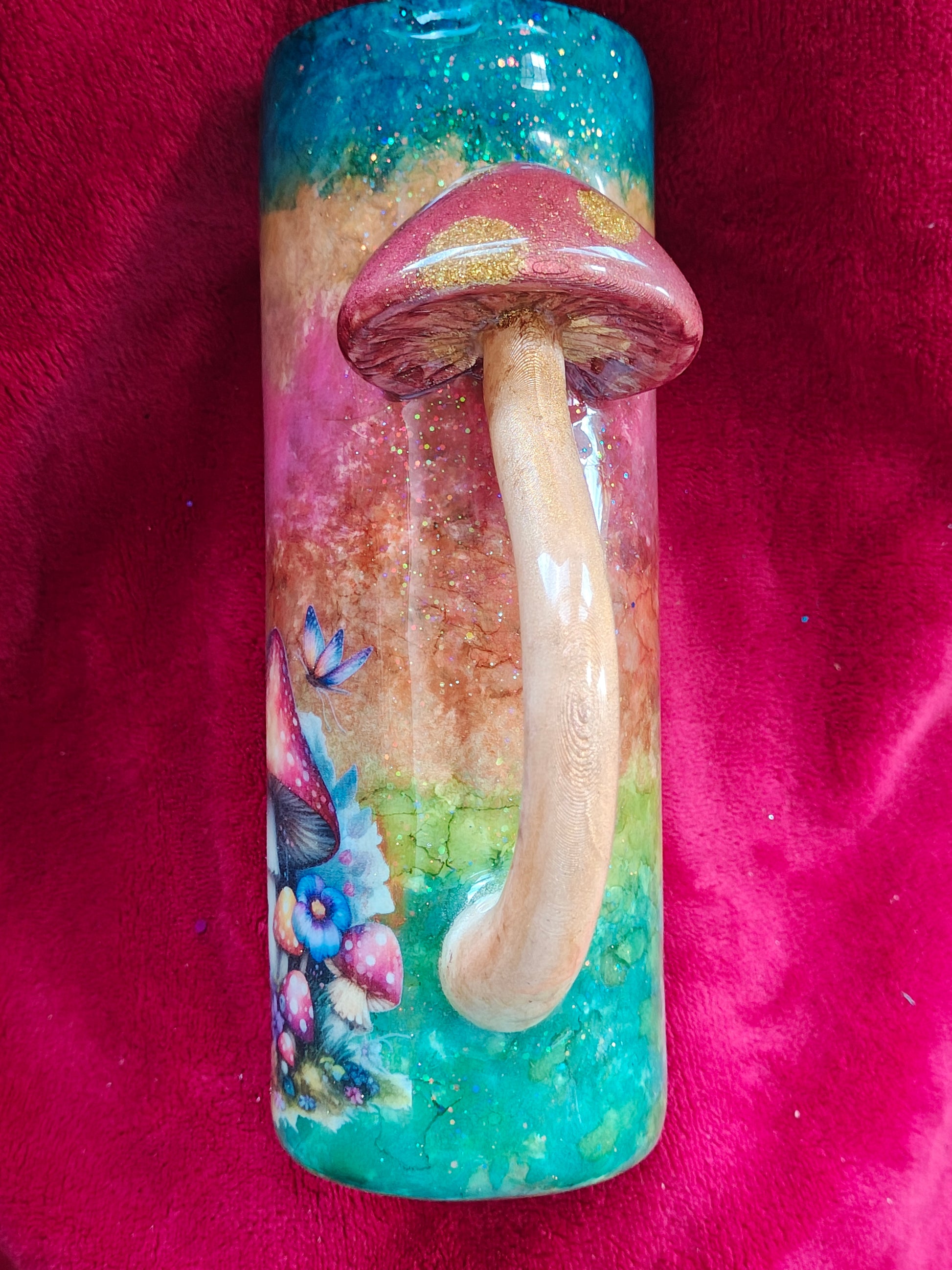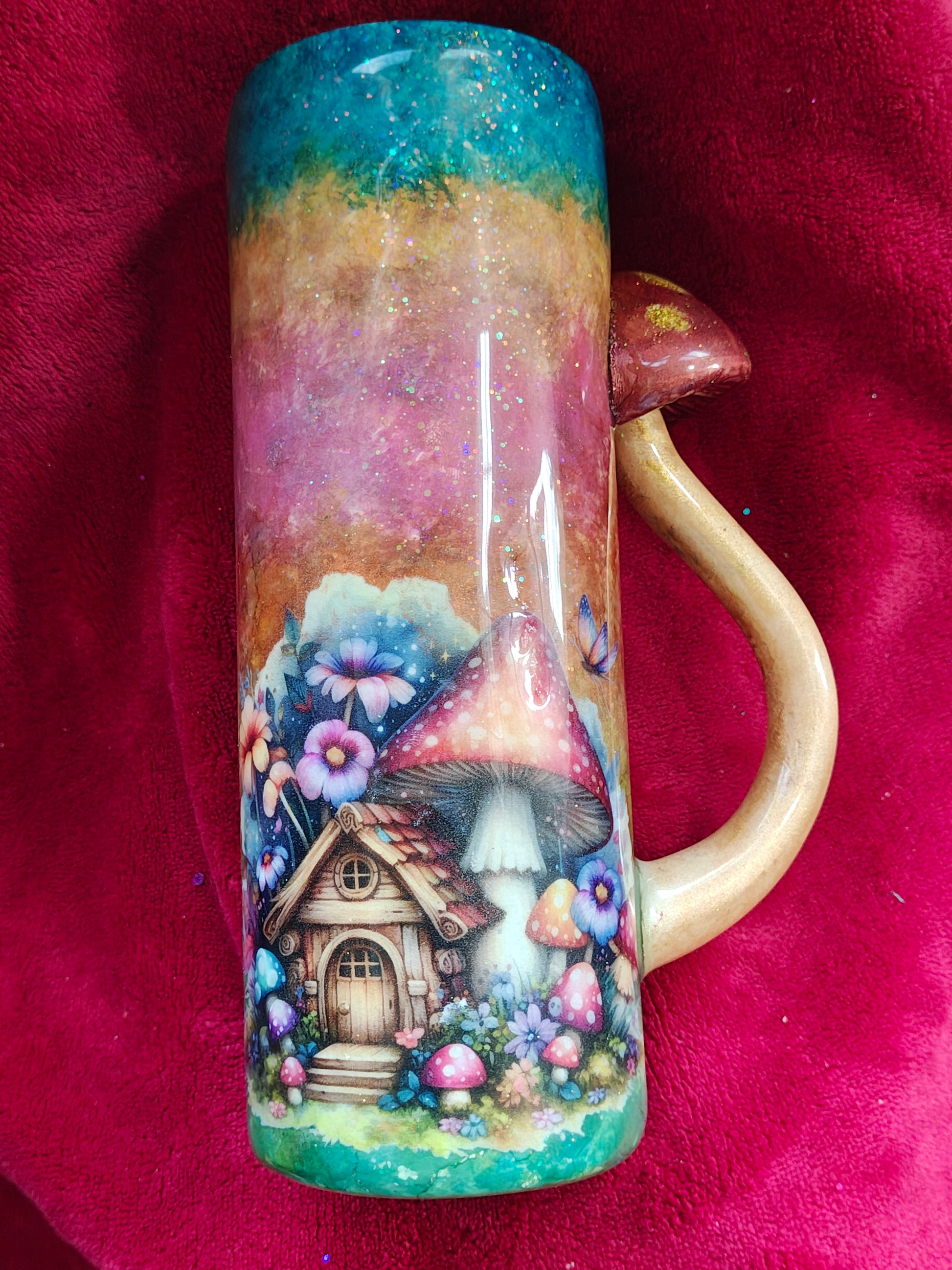 Mushroom fairy house with 3D mushroom handle