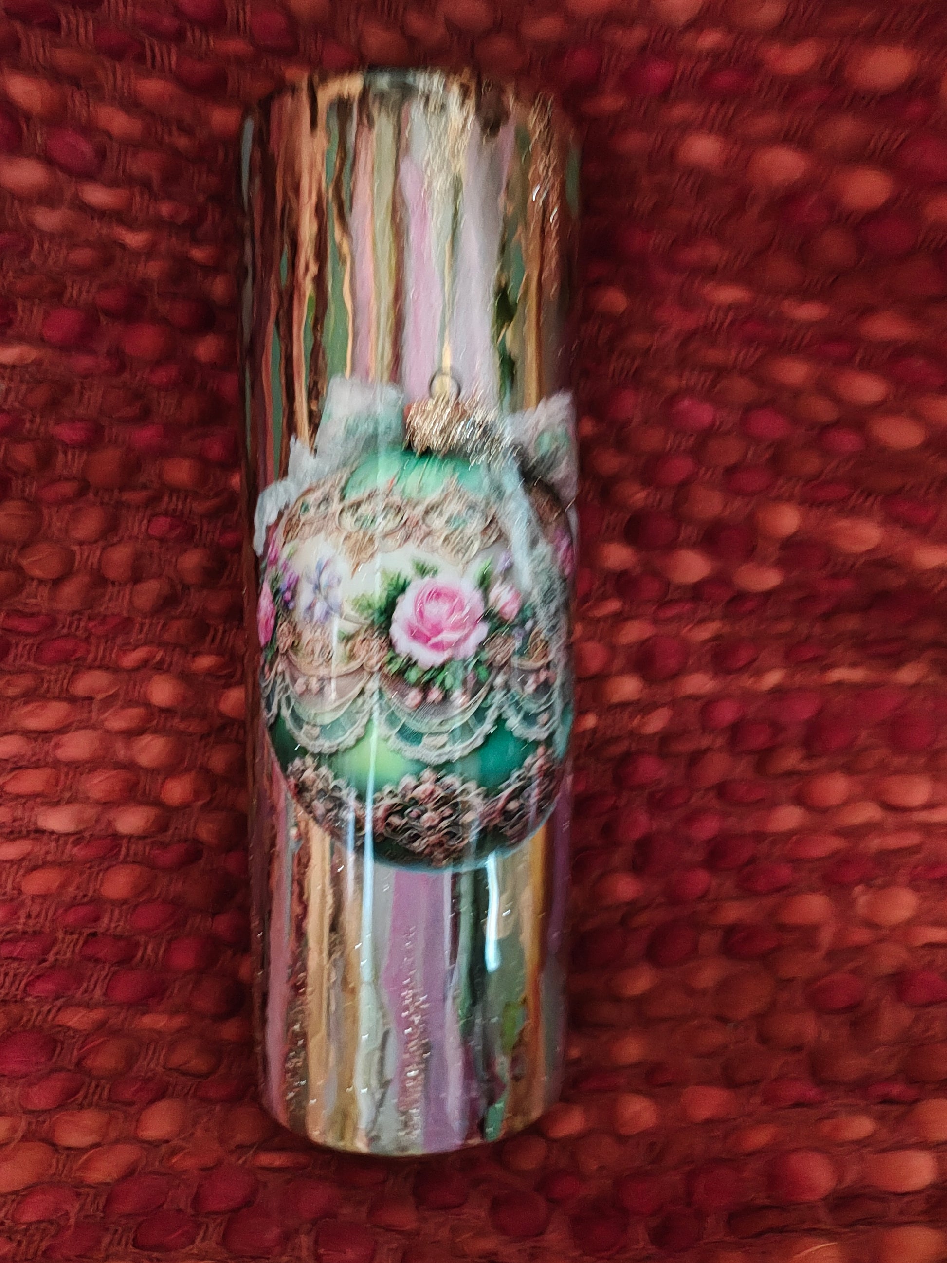 Green/pink/gold Christmas ornament