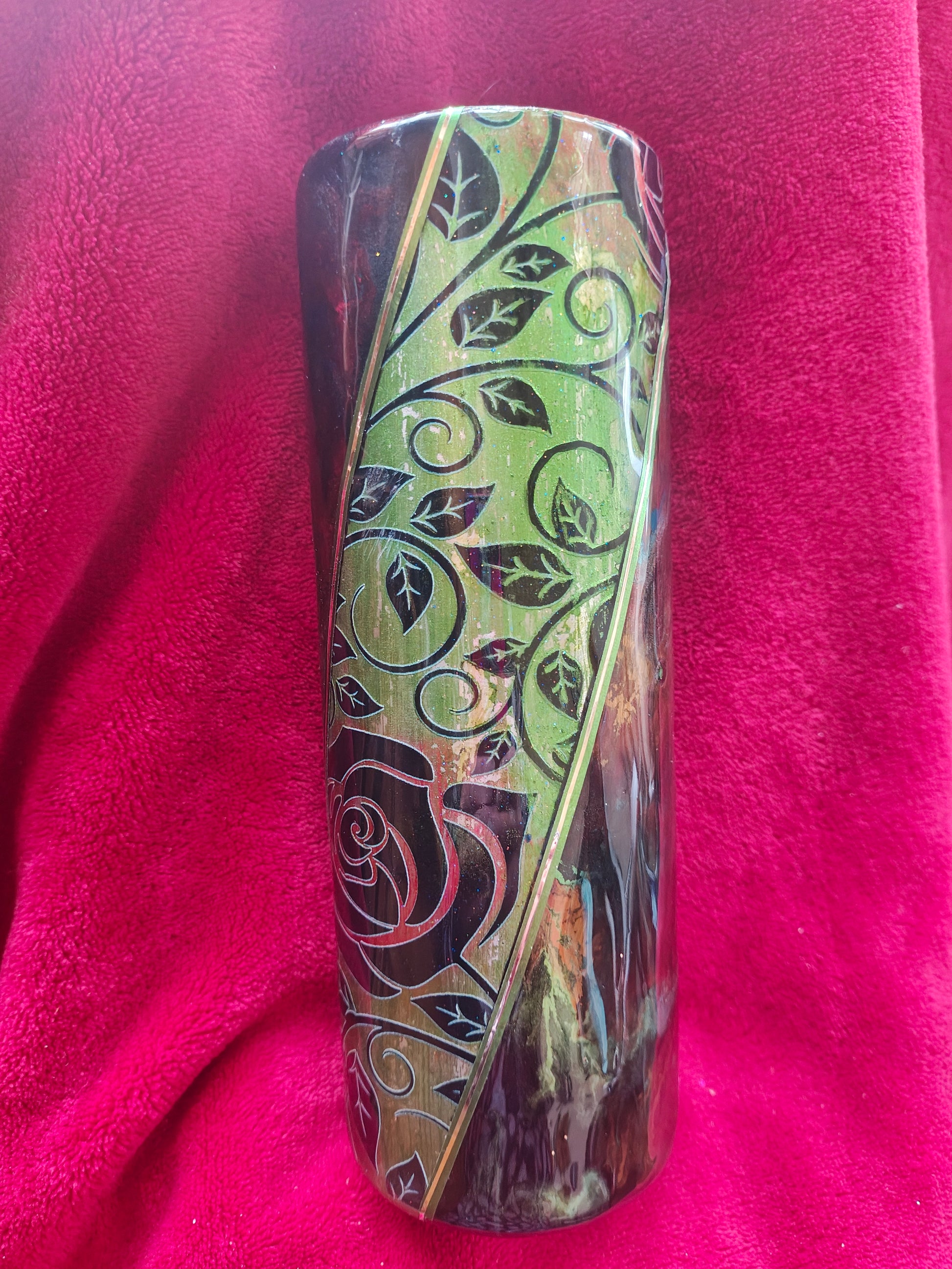 Rose and grren mica, decal and ink swirl