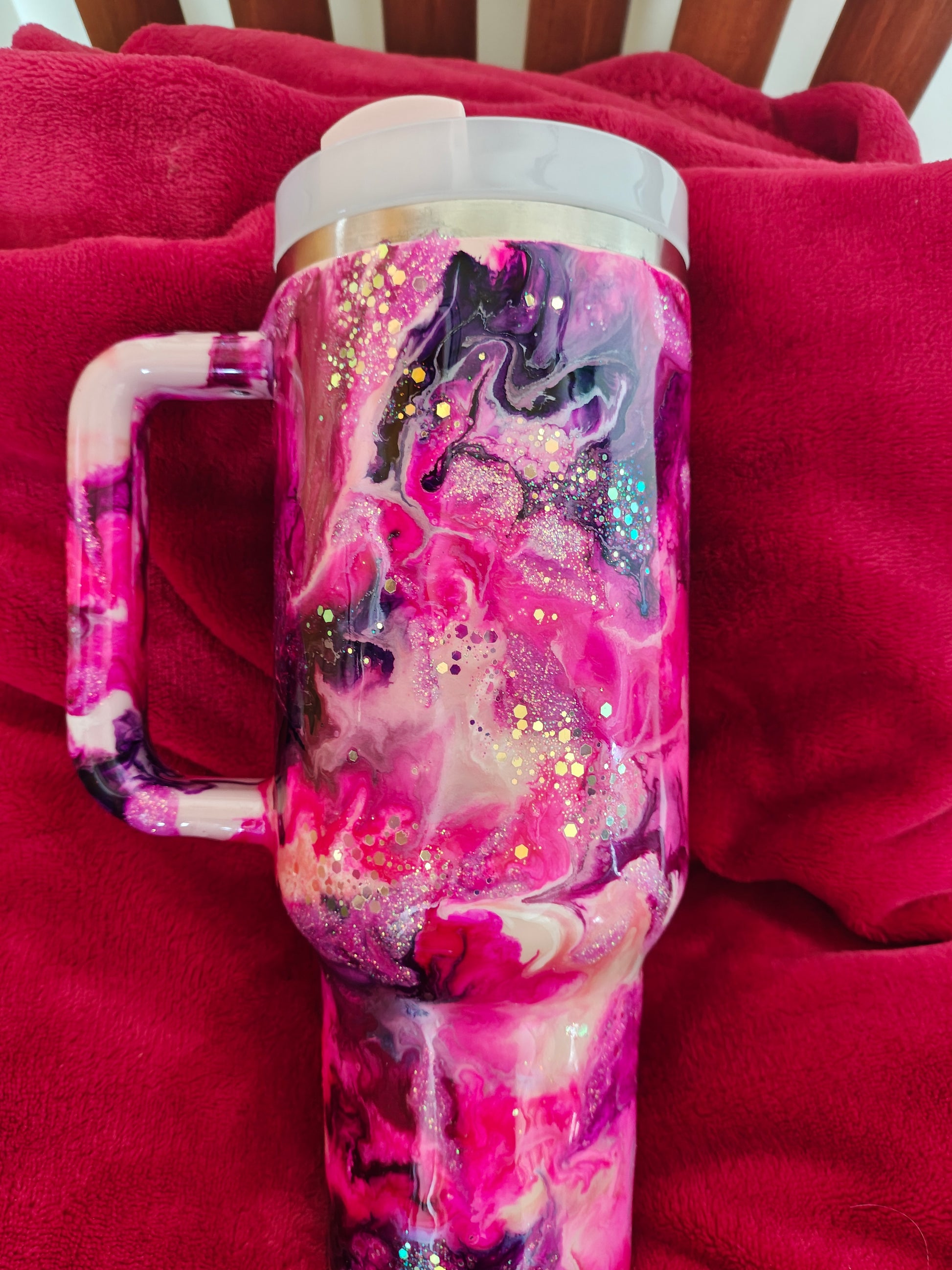 Pink Stanley with pink/purple swirls